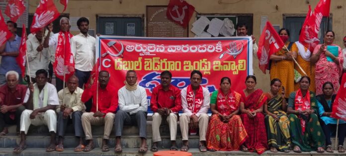 హుస్నాబాద్ మున్సిపల్ కార్యాలయం ఎదుట అర్హులైన నిరుపేదలకు డబుల్ బెడ్ రూమ్ ఇండ్లు కేటాయించాలని డిమాండ్ చేస్తూ సోమవారం భారత కమ్యూనిస్టు పార్టీ (సిపిఐ)అధ్వర్యంలో ధర్నా నిర్వహించారు. డబుల్ బెడ్ రూమ్ ఇండ్ల కేటాయింపులో జరిగిన అవకతవకలపై మరోసారి సర్వే చేయించాలని మున్సిపల్ చైర్మన్ ఆకుల రజితకు వినతిపత్రం అందించారు. ప్రభుత్వ నిబంధనల ప్రకారం ఇండ్లు,ఇండ్ల స్థలాలు లేని నిరుపేదలకు డబుల్ బెడ్ రూమ్ ఇండ్లు కేటాయించాలని సిపిఐ రాష్ట్ర కౌన్సిల్ సభ్యుడు గడిపె మల్లేశ్ కోరారు. మున్సిపల్ కార్యాలయంలో అంటించిన డబుల్ బెడ్ రూమ్ ఇండ్ల లబ్ధిదారుల జాబితాలో నిబంధనలకు విరుద్ధంగా ఇండ్లు, ఇండ్ల స్థలాలు, ఉన్నవారికి ఓకే ఇంట్లో ఇద్దరికి కొంత మంది ఉద్యోగుల పేర్లే ఉన్నాయని గడిపె మల్లేశ్ తెలిపారు. చాడ వెంకటరెడ్డి ఎమ్మెల్యేగా ఉన్నప్పుడు ఇండ్లు, ఇండ్ల స్థలాలు ఇచ్చిన పేదల పేర్లు కూడా మళ్లీ జాబితాలో ఉన్నాయని, ఒక వ్యక్తికి ప్రభుత్వం నుండి ఎన్నిసార్లు లబ్ధి చేకూరుస్తారని, డబుల్ బెడ్ రూం ఇండ్ల జాబితాపై వచ్చిన ఫిర్యాదులను ఇచ్చేందుకు మరో 10 రోజులు గడువు పెంచి ప్రత్యేక సమర్థ వంతులైన అధికారులచే విచారిస్తున్నారు. అర్హులైన పేదలకు ప్రభుత్వం కట్టిచ్చే డబుల్ బెడ్ రూం ఇండ్ల మంజూరి కోసం జిల్లా కలెక్టర్, ఎమ్మెల్యే వి సతీష్ కుమార్ న్యాయం చేయకుంటే సిపిఐ ఆధ్వర్యంలో పెద్ద ఎత్తున ఆందోళనలు చేపడతామని, ఈ కార్యక్రమంలో సిపిఐ జిల్లా కార్యవర్గ సభ్యులు జాగీర్ సత్యనారాయణ, జిల్లా కౌన్సిల్ సభ్యులు అయిలేని సంజివరెడ్డి, కొహెడ కొమురయ్య ఏగ్గొజు సుదర్శన్ చారి, గూడ పద్మ, జనగాం రాజు కుమార్, ఏలురి స్వాతి, కాల్వల ఎల్లయ్య, పోగుల నవ్య,పెద్ది నిర్మల, రాయిళ్ళు శోభ, వంగోజు భాస్కరా చారి, బిచ్చాల శ్రీనివాస్, మాడిశేట్టి శ్రీదర్ తదితరులు పాల్గొన్నారు.