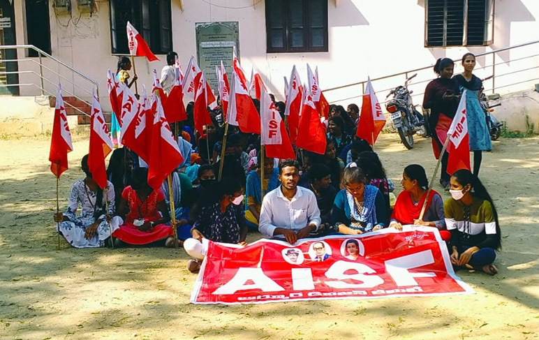 పెండింగ్లో ఉన్న స్కాలర్షిప్లను వెంటనే విడుదల చేయాలని ఏఐఎస్ఎఫ్ ఆధ్వర్యంలో ధర్నా